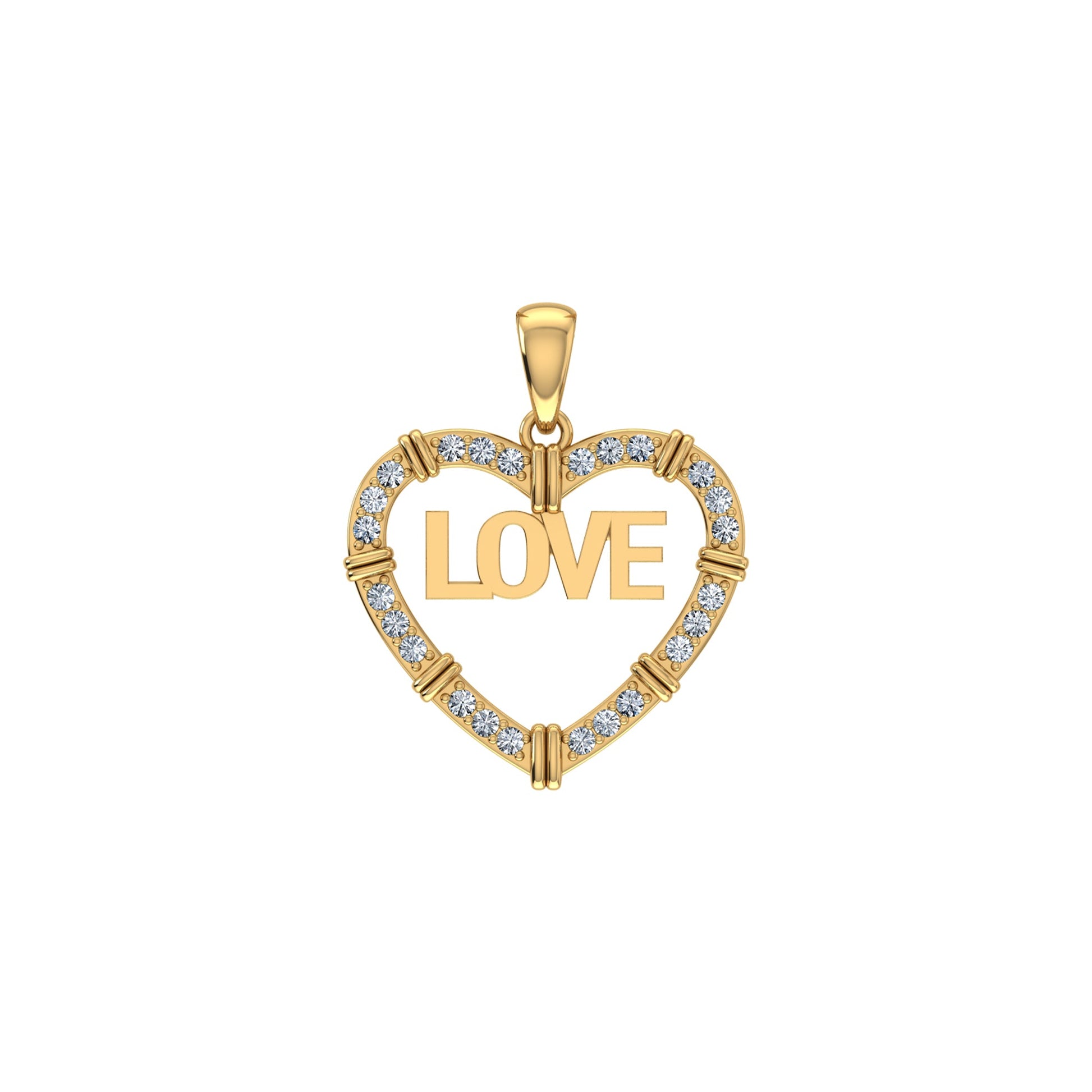 10K Yellow Gold Round Diamond Womens Love Heart Pendant 1/4 Ctw