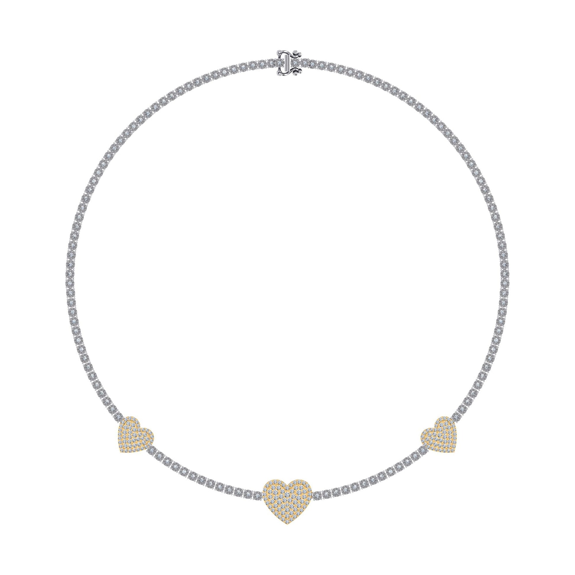 10K Yellow White two tone Gold Round Diamond Heart Designer 18 Inch Necklace 2-7/8 Ctw