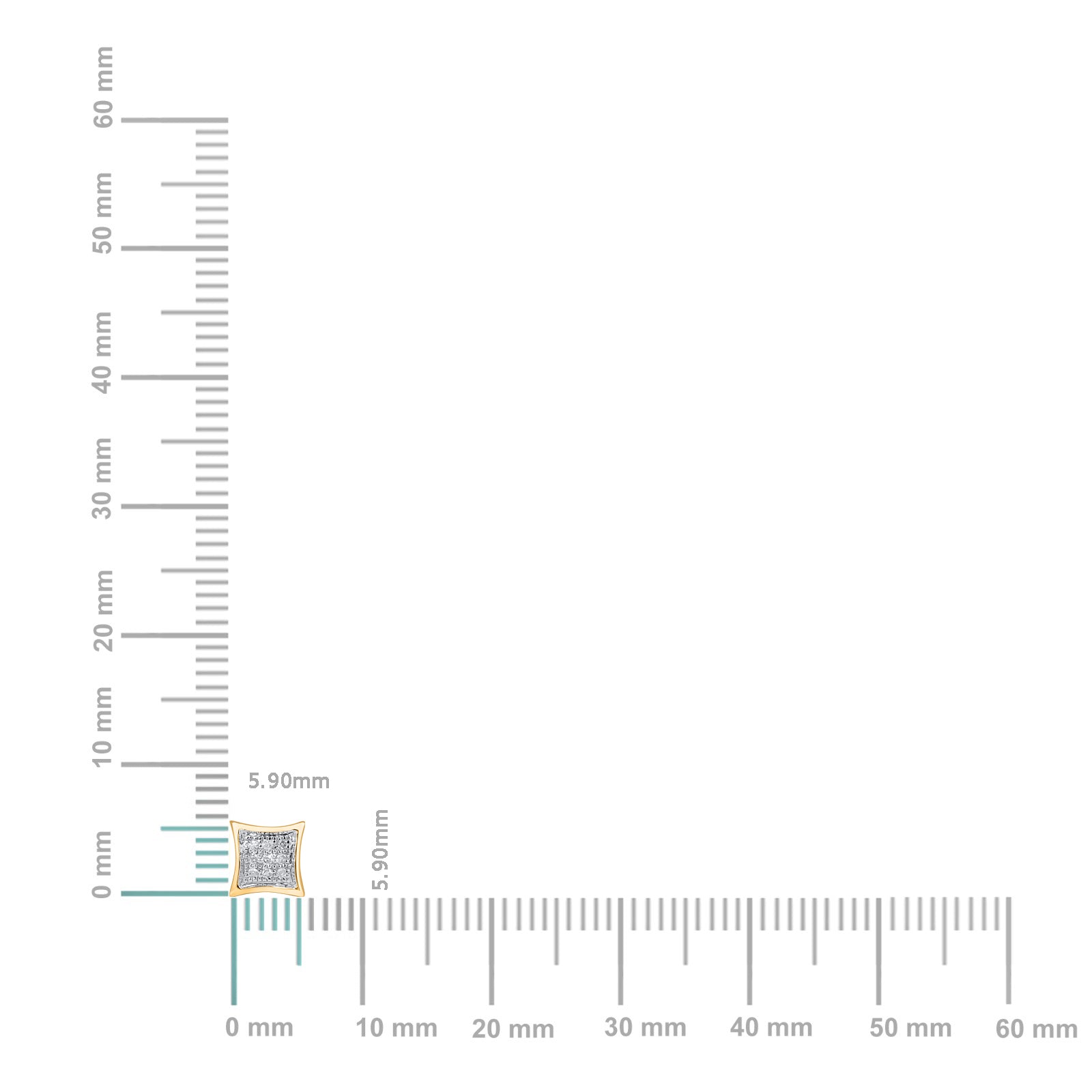 10K Yellow White Two Tone Round Diamond Square Stud Earring 1/10 Ctw