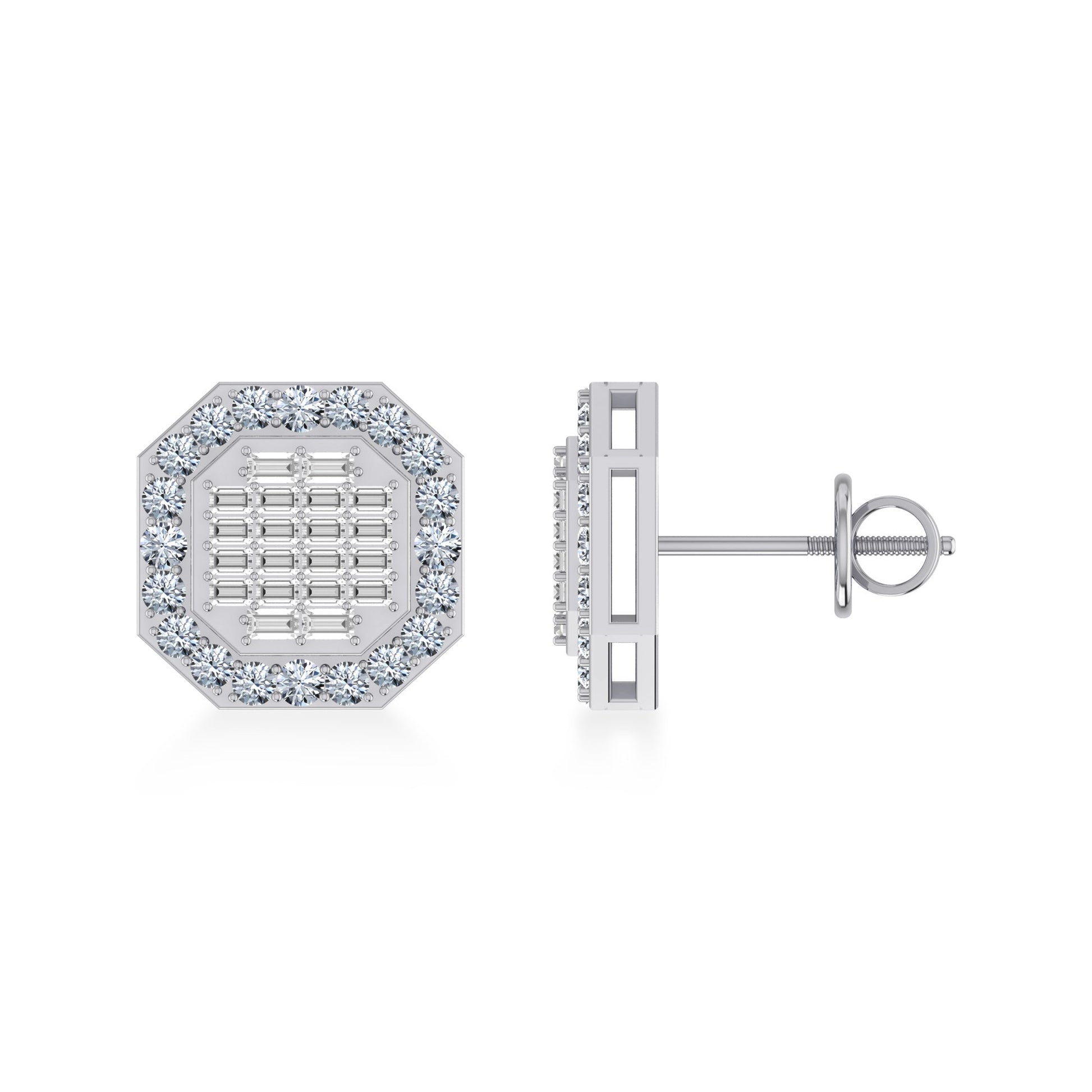 14K White Gold Round Baguette Diamond Designer Stud Earrings 7/8 Ctw