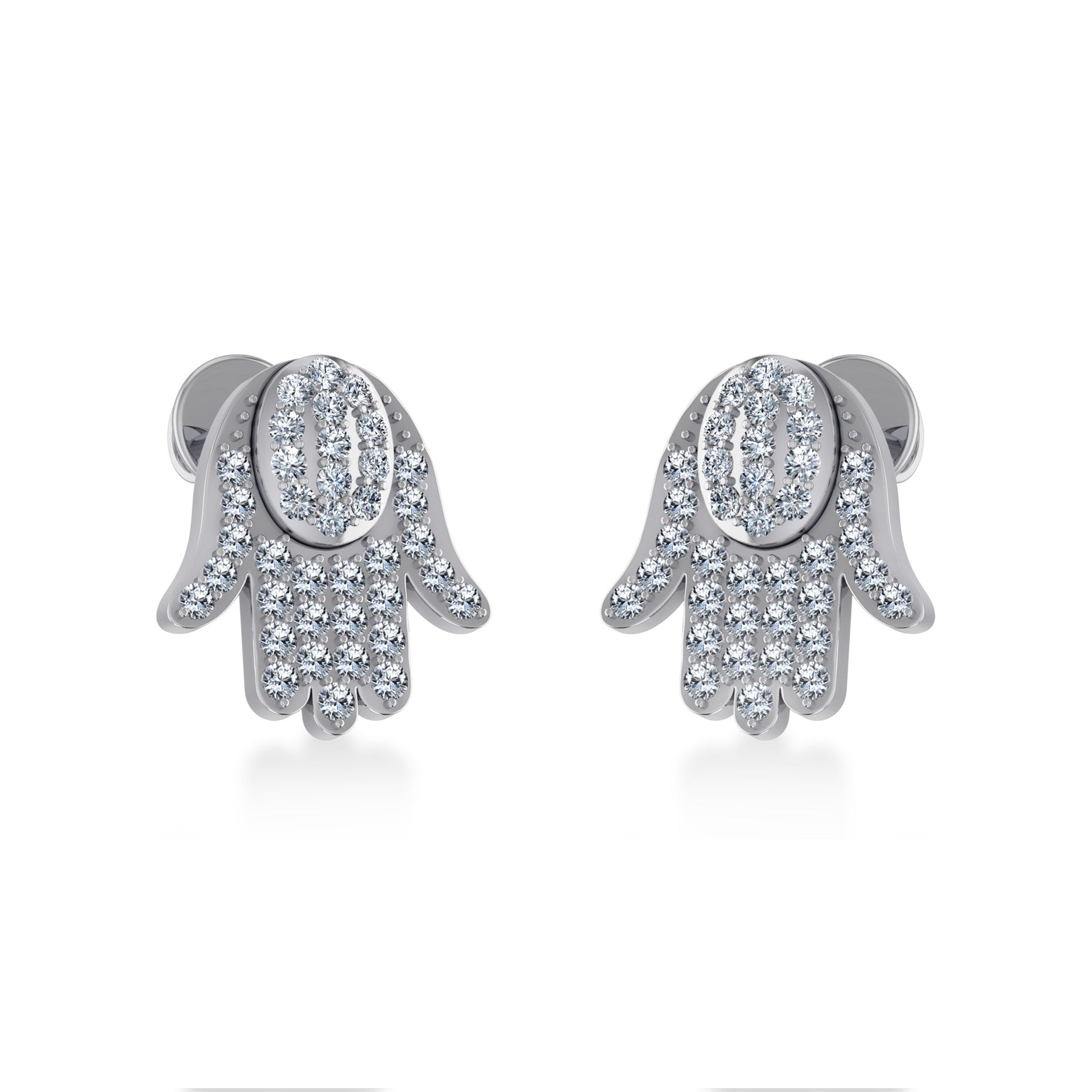 14K White Gold Round Baguette Diamond Hamza Hand Religious Stud Earrings 1/5 Ctw