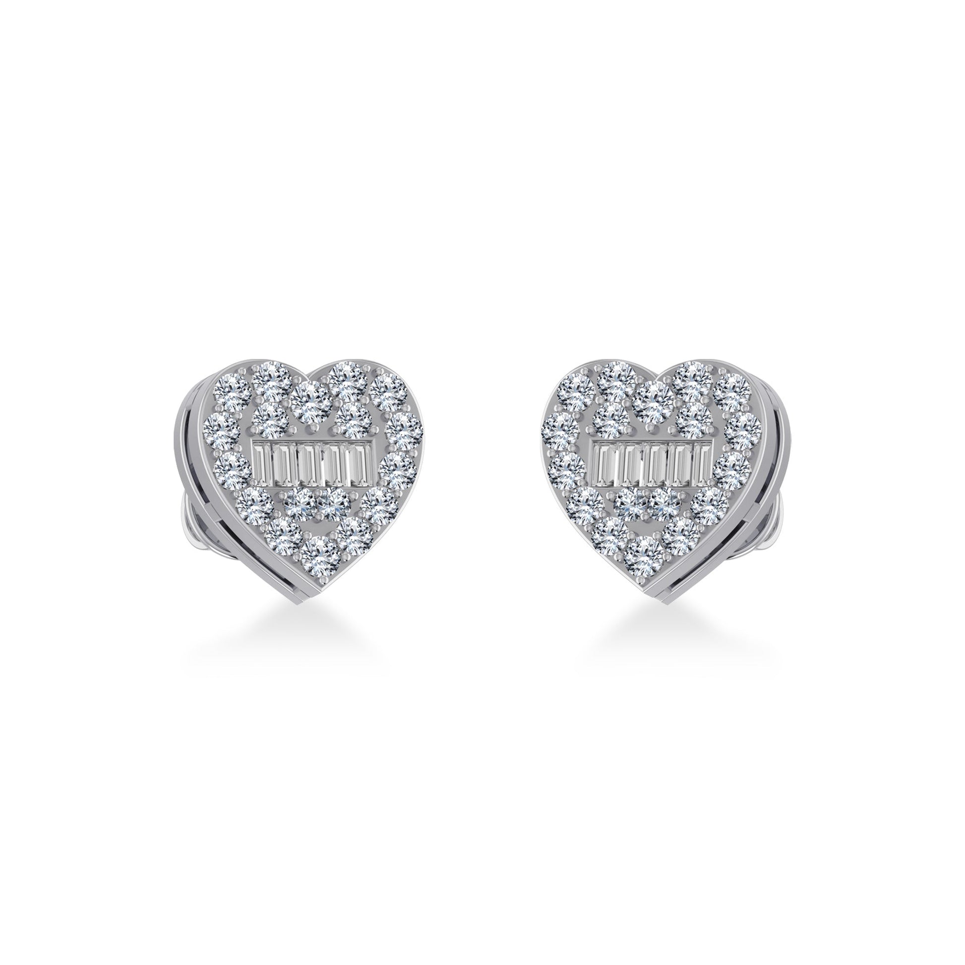 JewelryByBryce: 14K White Gold Round Baguette Diamond Heart Shape Cluster Stud Earrings – 3/8 Ctw