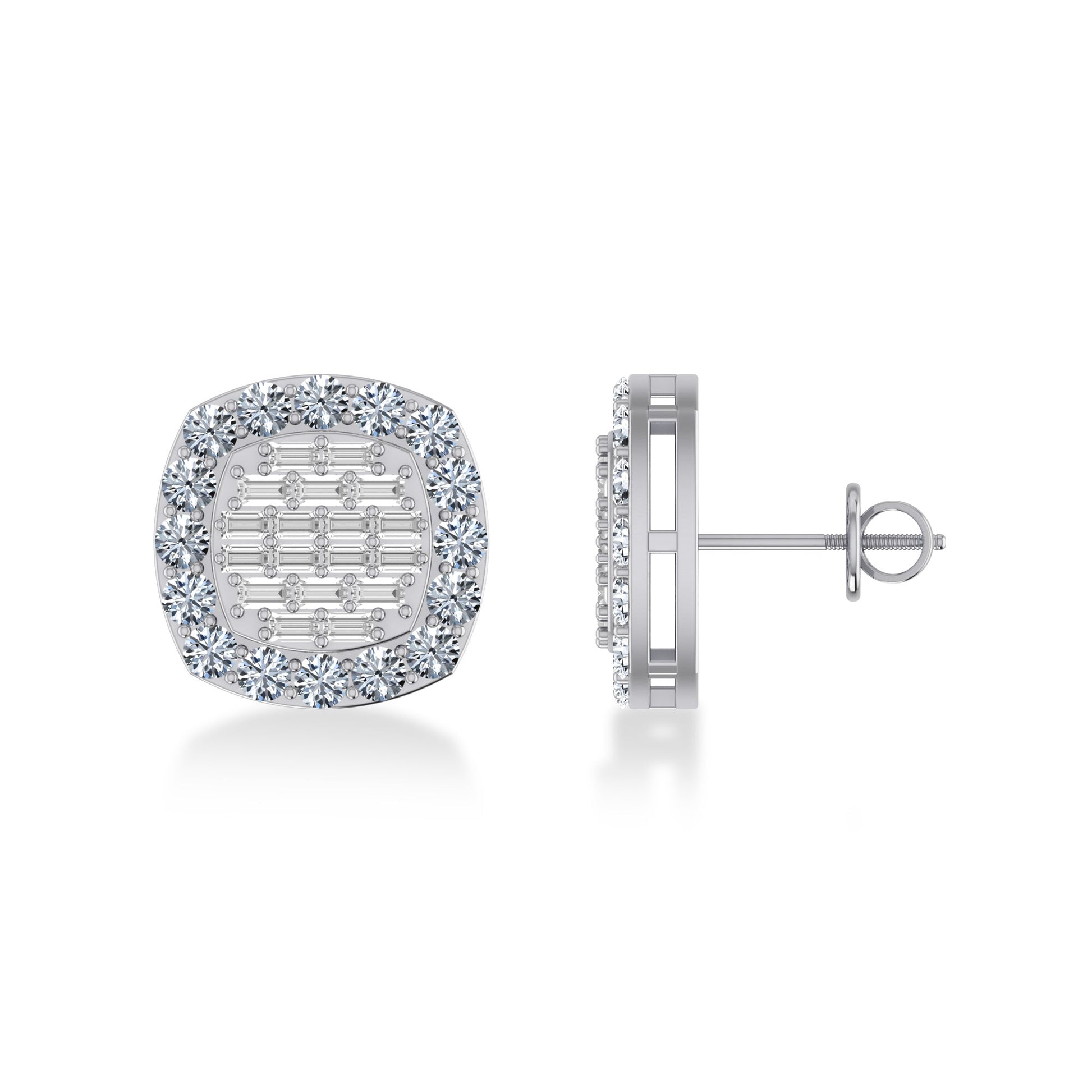 JewelryByBryce Presents: 14K White Gold Round & Baguette Diamond Square Stud Earrings – 1 Ctw