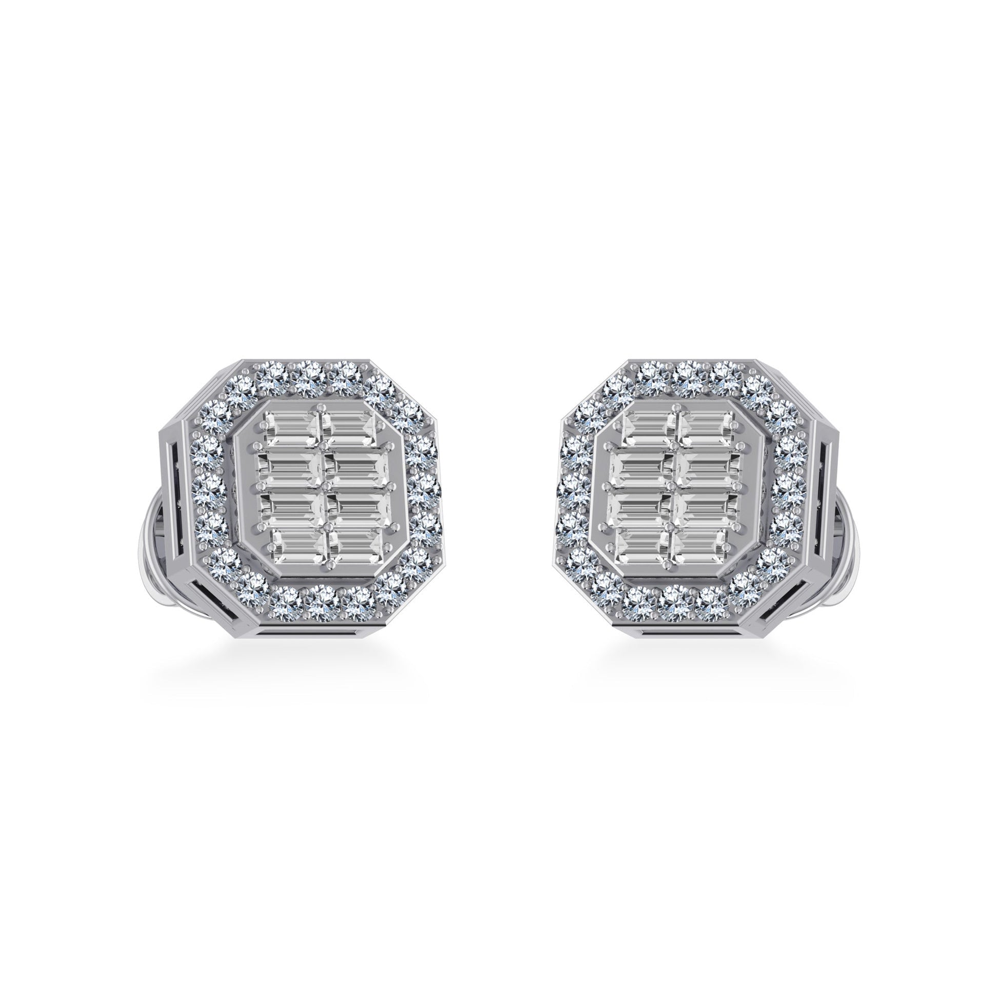 JewelryByBryce Presents: 14K White Gold Round & Baguette Diamond Stud Earrings – 1/4 Ctw