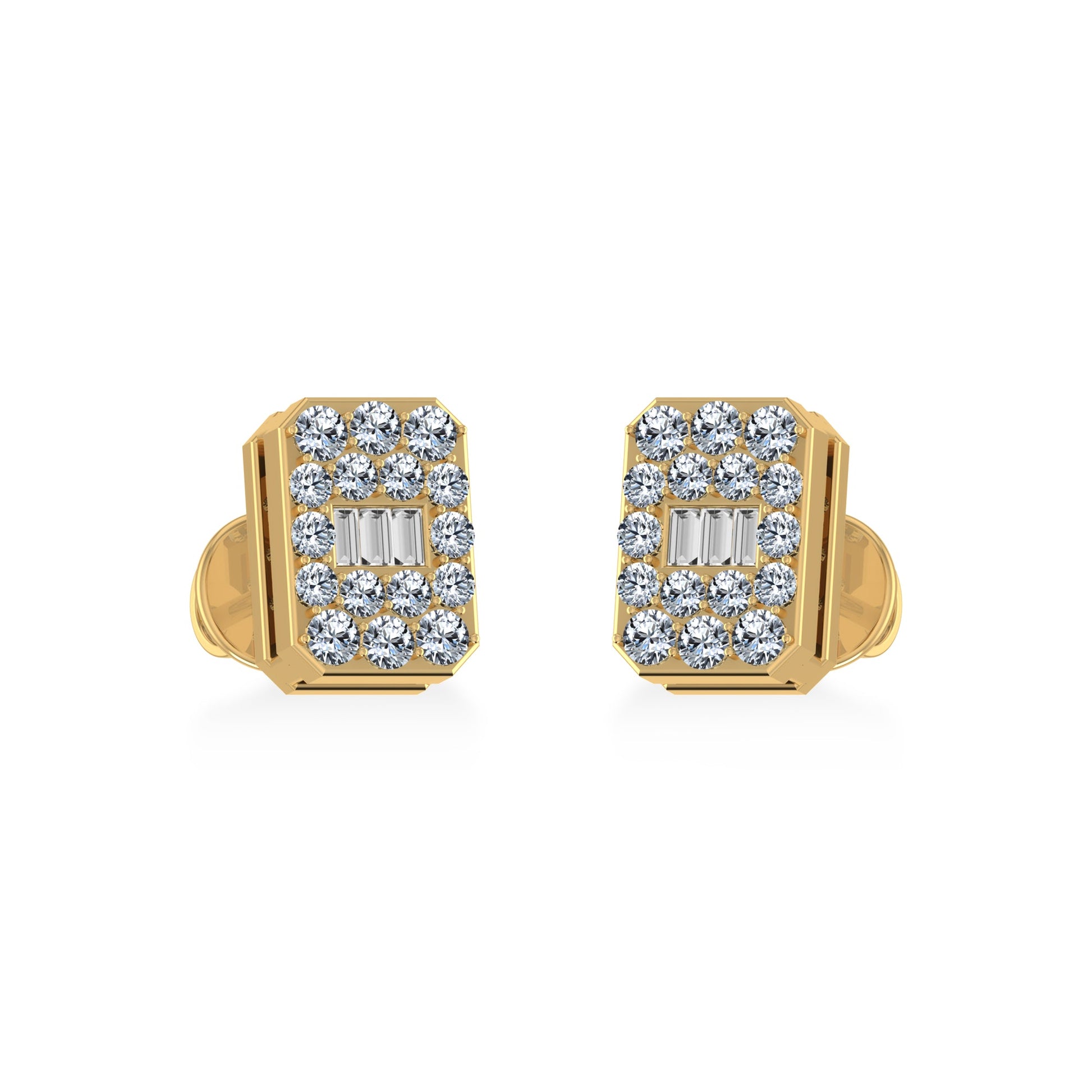 14K Yellow Gold Baguette Diamond Emerald Shape Stud Earrings 1/5 Ctw