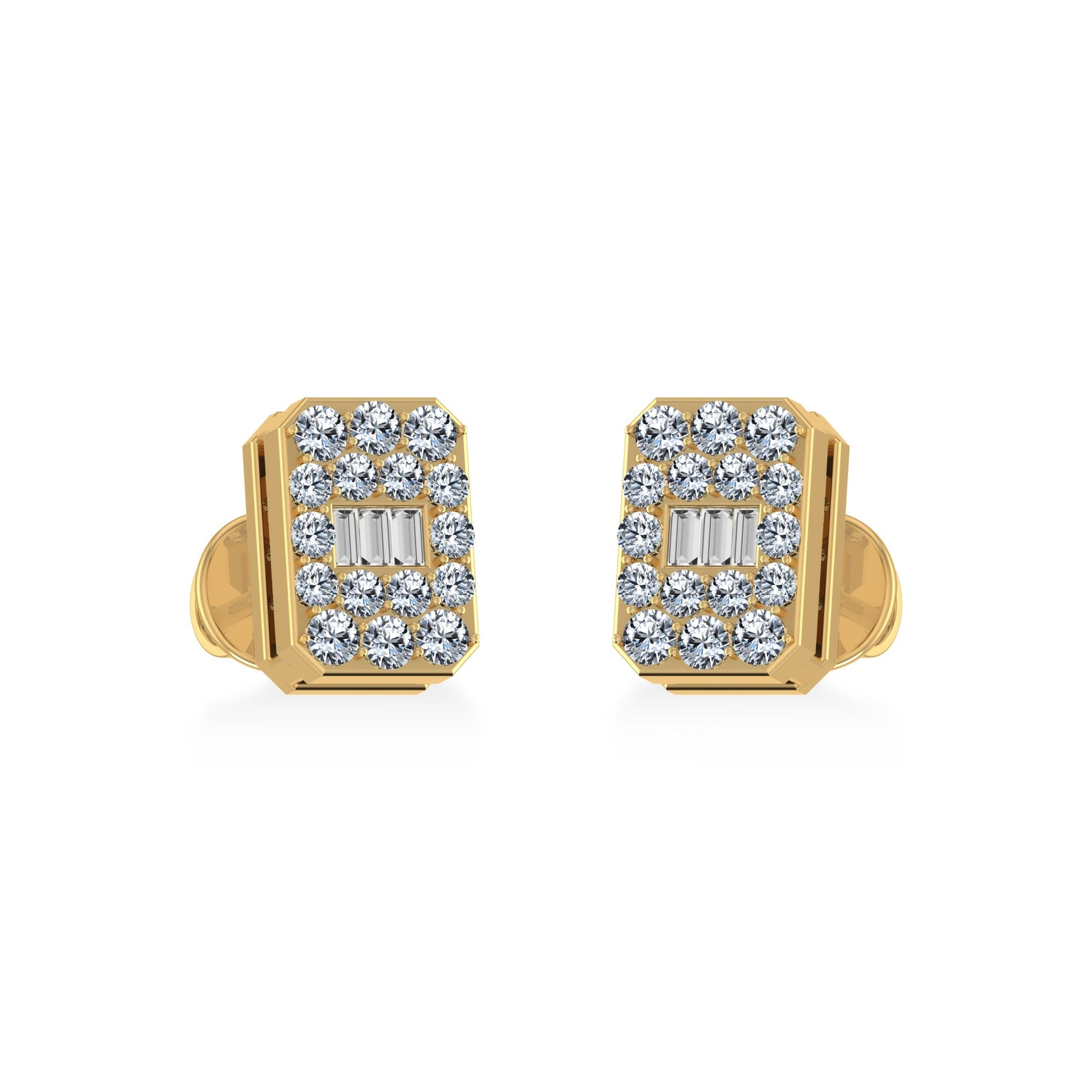 Elevate your elegance with these luxurious 14K yellow gold stud earrings, featuring radiant baguette diamonds set in a striking emerald shape. With a total diamond weight of 1/5 carat, these earrings are designed to captivate attention while adding a timeless sophistication to your look.