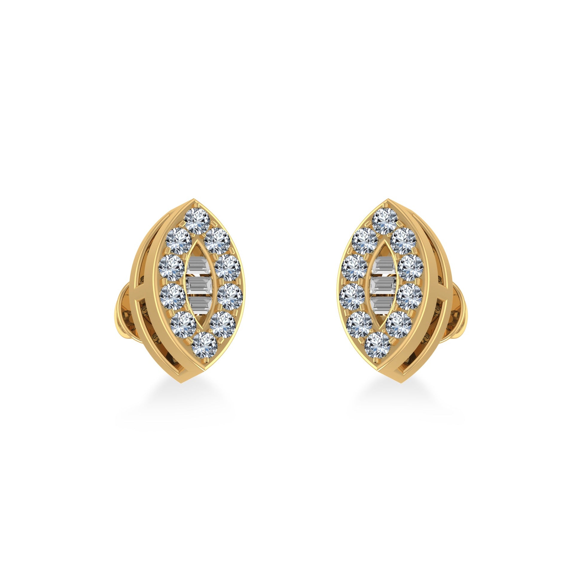 14K Yellow Gold Baguette Diamond Marquise Shape Cluster Stud EarRing 1/8 Ctw