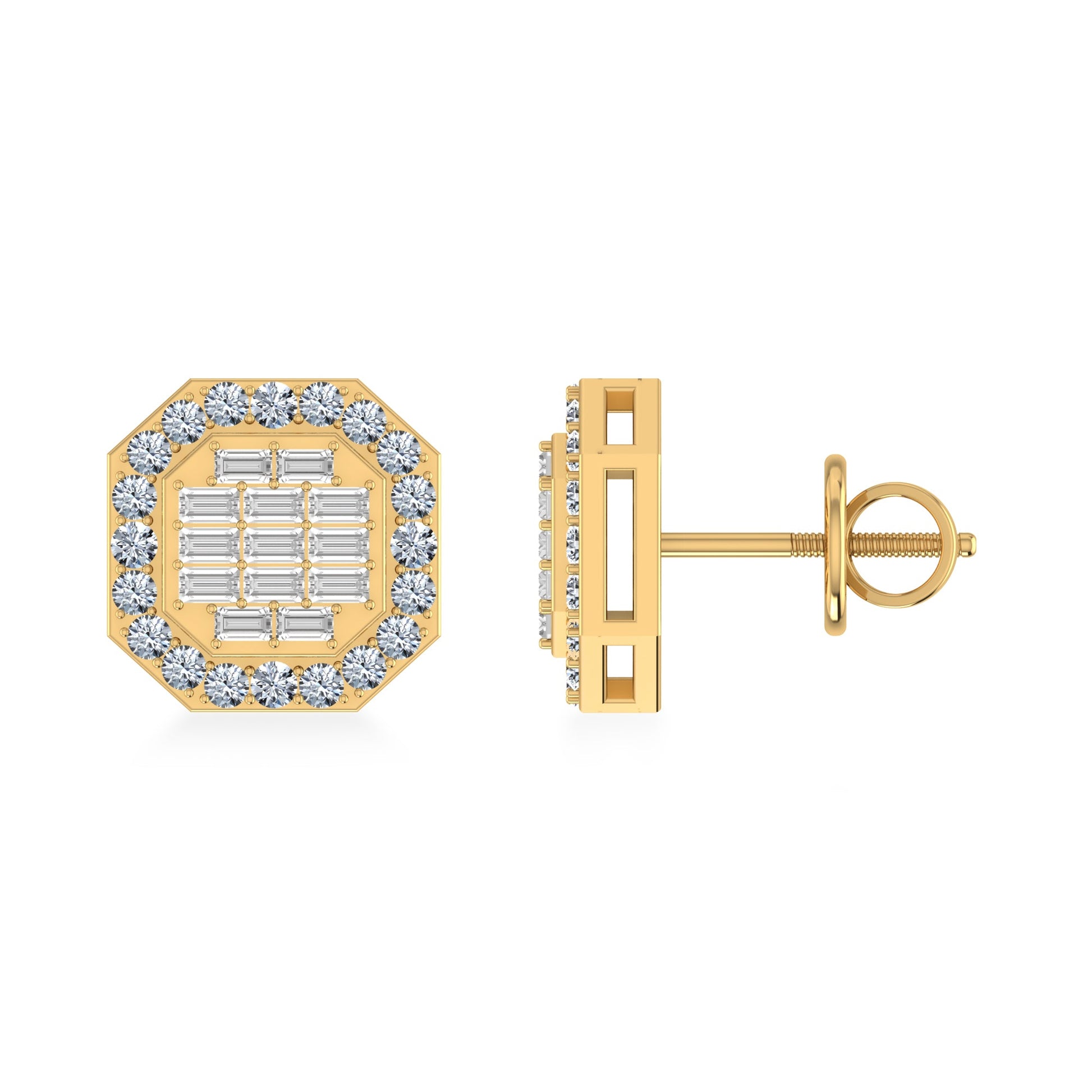 14K Yellow Gold Round Baguette Diamond Designer Stud Earrings 1/2 Ctw