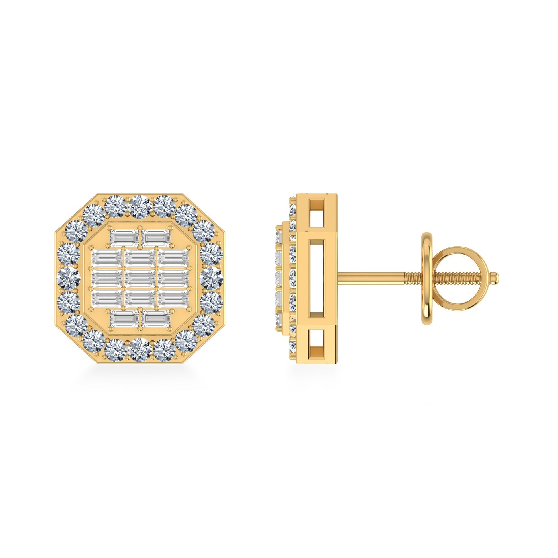 JewelryByBryce Presents: 14K Yellow Gold Round & Baguette Diamond Designer Stud Earrings – 1/2 Ctw