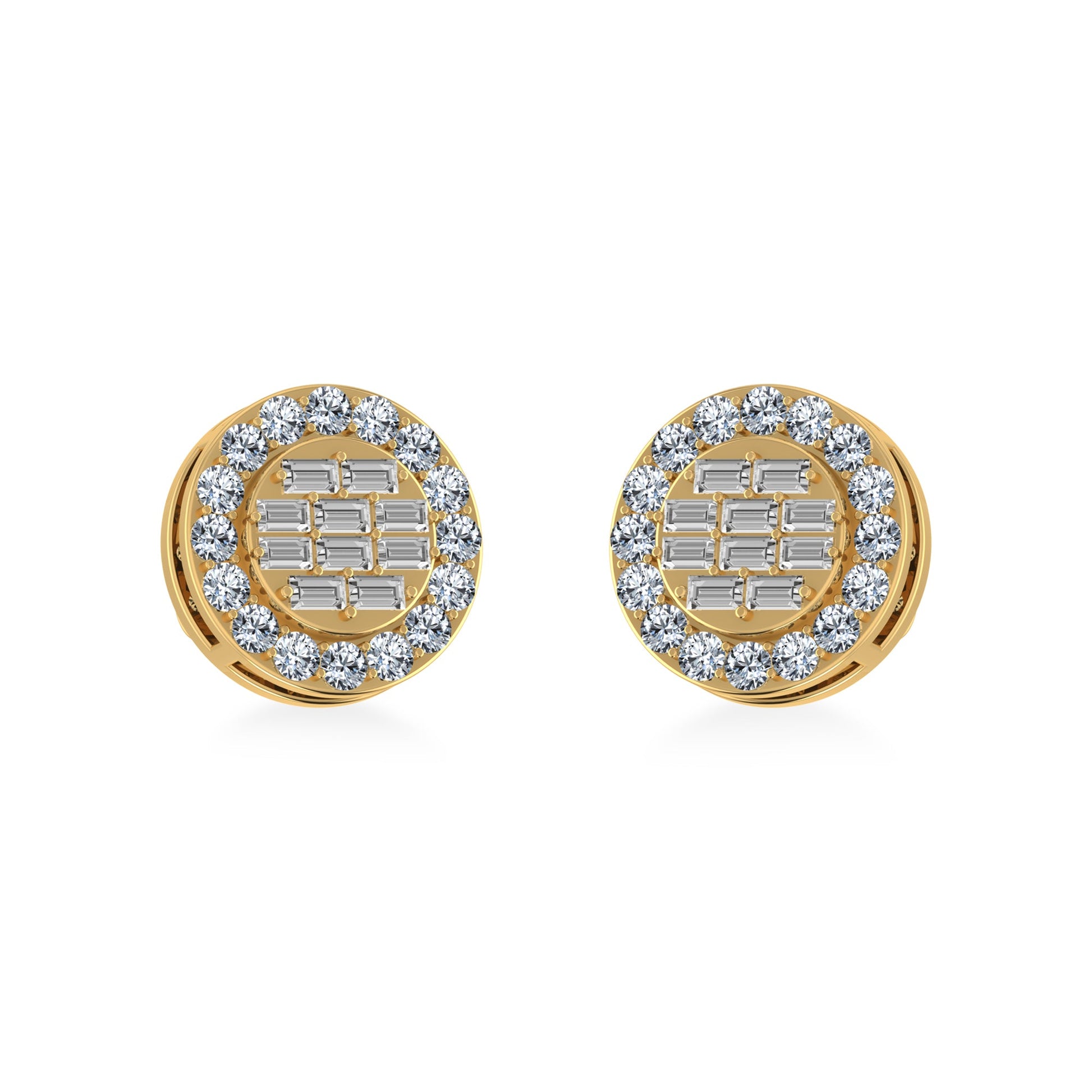 14K Yellow Gold Round Baguette Diamond Halo Stud Earrings 1/2 Ctw