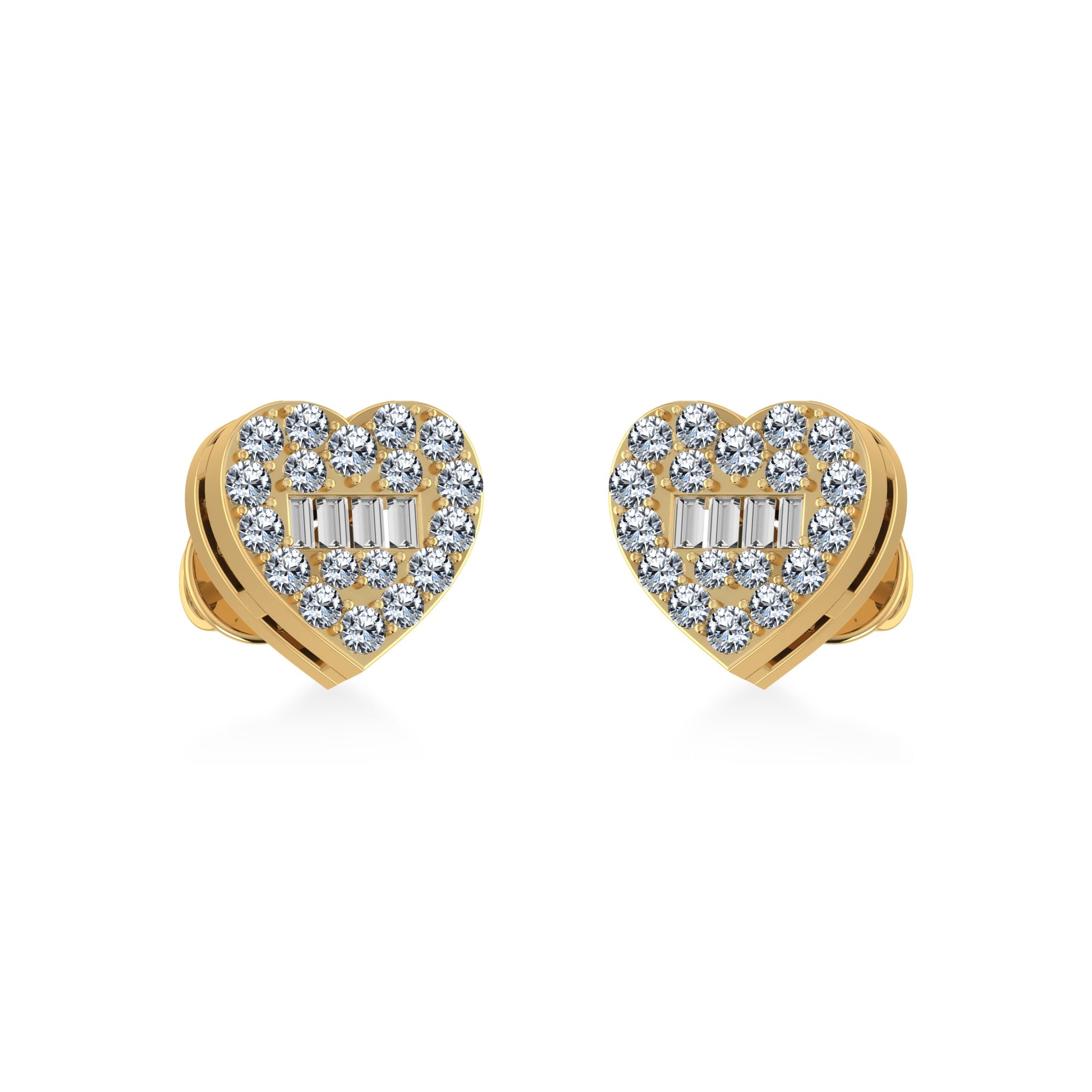 JewelryByBryce: 14K Yellow Gold Round Baguette Diamond Heart Shape Cluster Stud Earrings – 1/5 Ctw