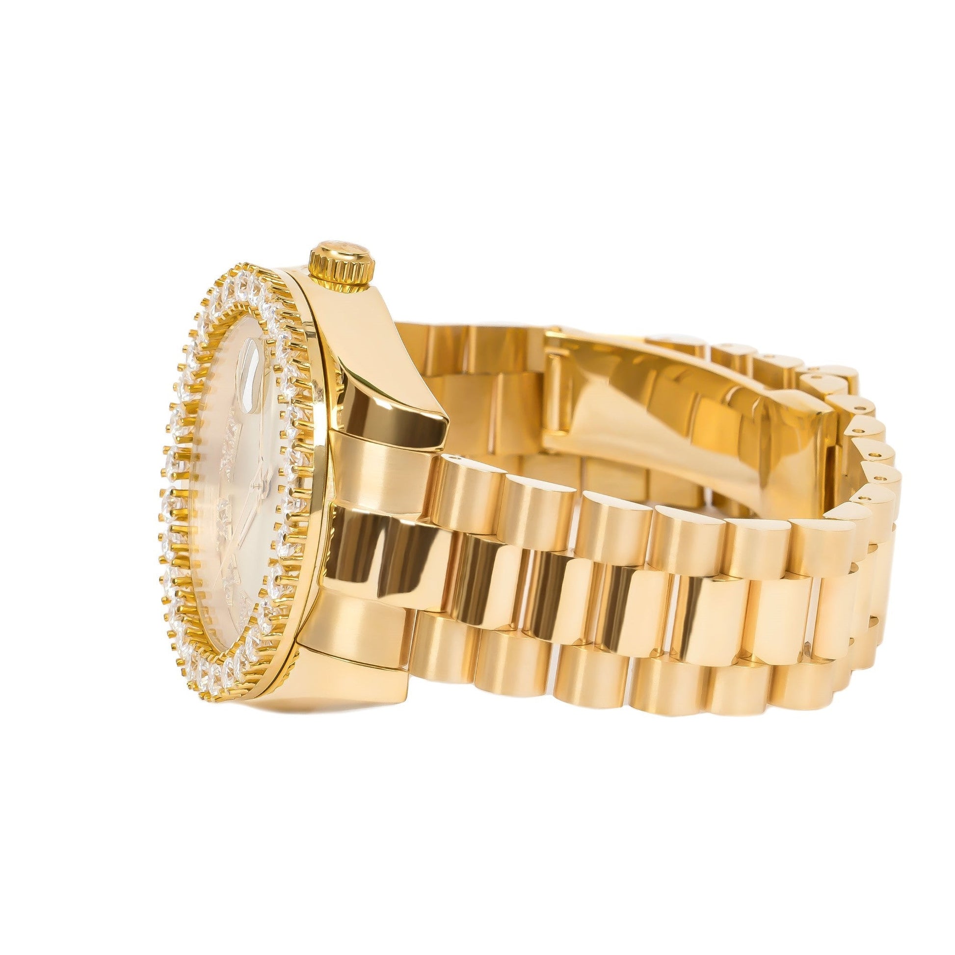 All-Gold Finish: From dial to band, the unified gold tone gives this piece a cohesive and powerful look