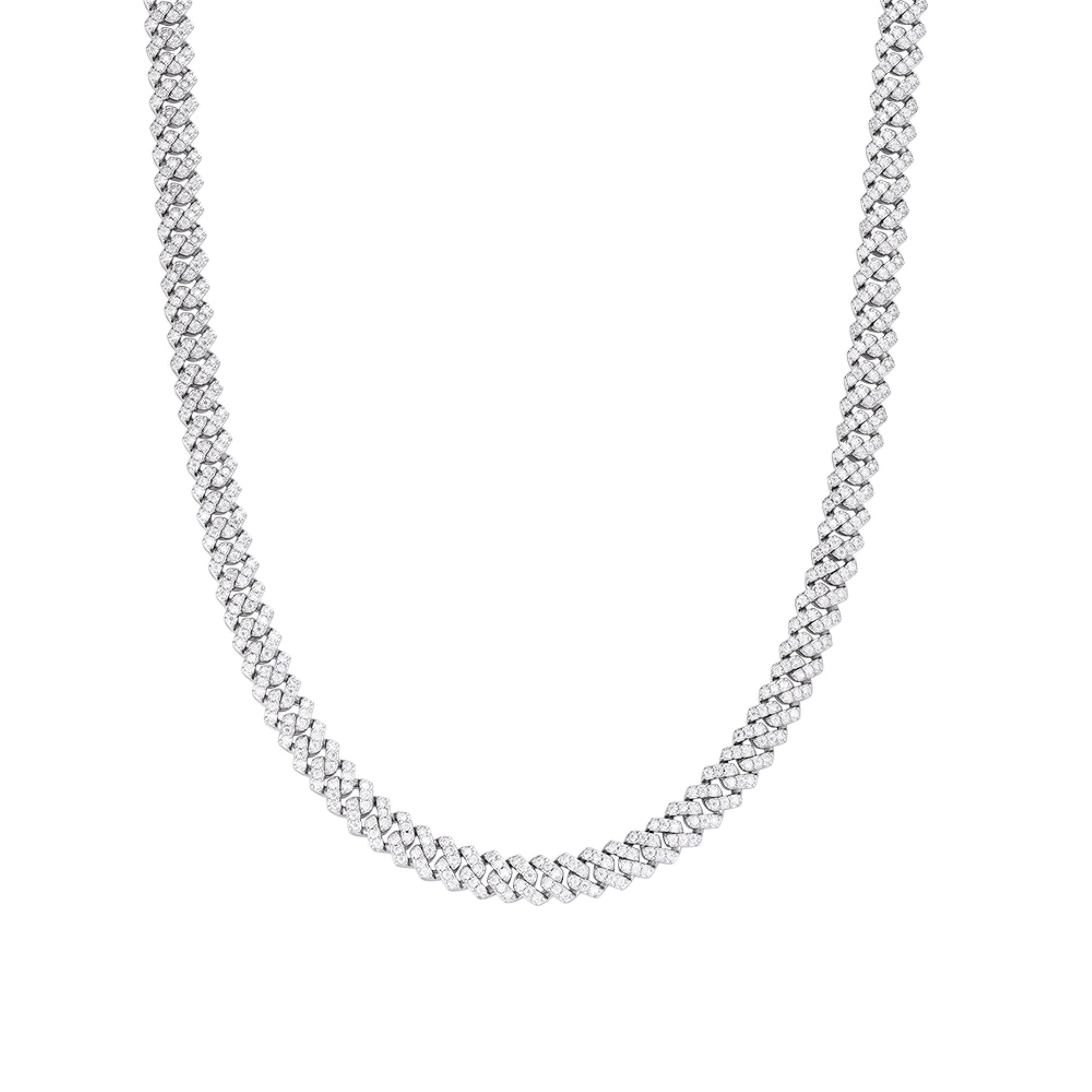 Simplicity meets elegance with this 20-inch 6mm Moissanite Cuban Link Necklace, a sleek and sophisticated piece designed to elevate any look. With 5-3/8 carats of stunning round Moissanite, this necklace delivers a captivating sparkle that doesn’t overpower but instead adds a refined touch. Perfect for the modern man who appreciates the finer things in life.