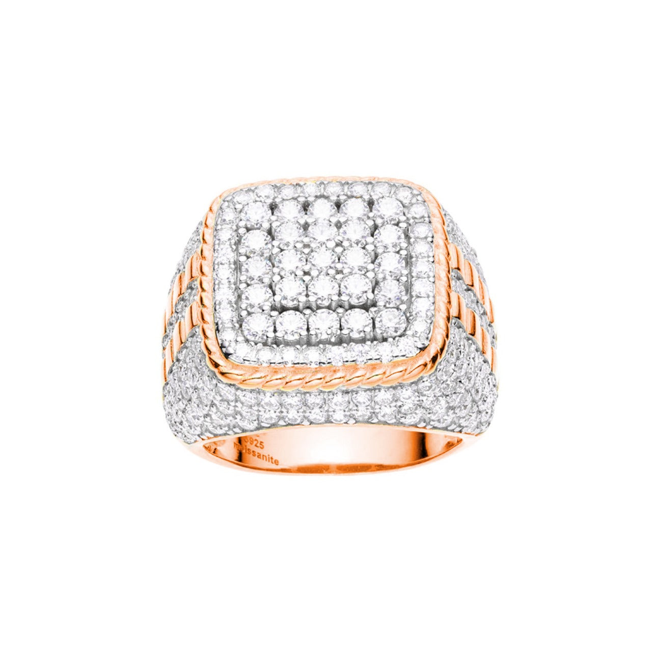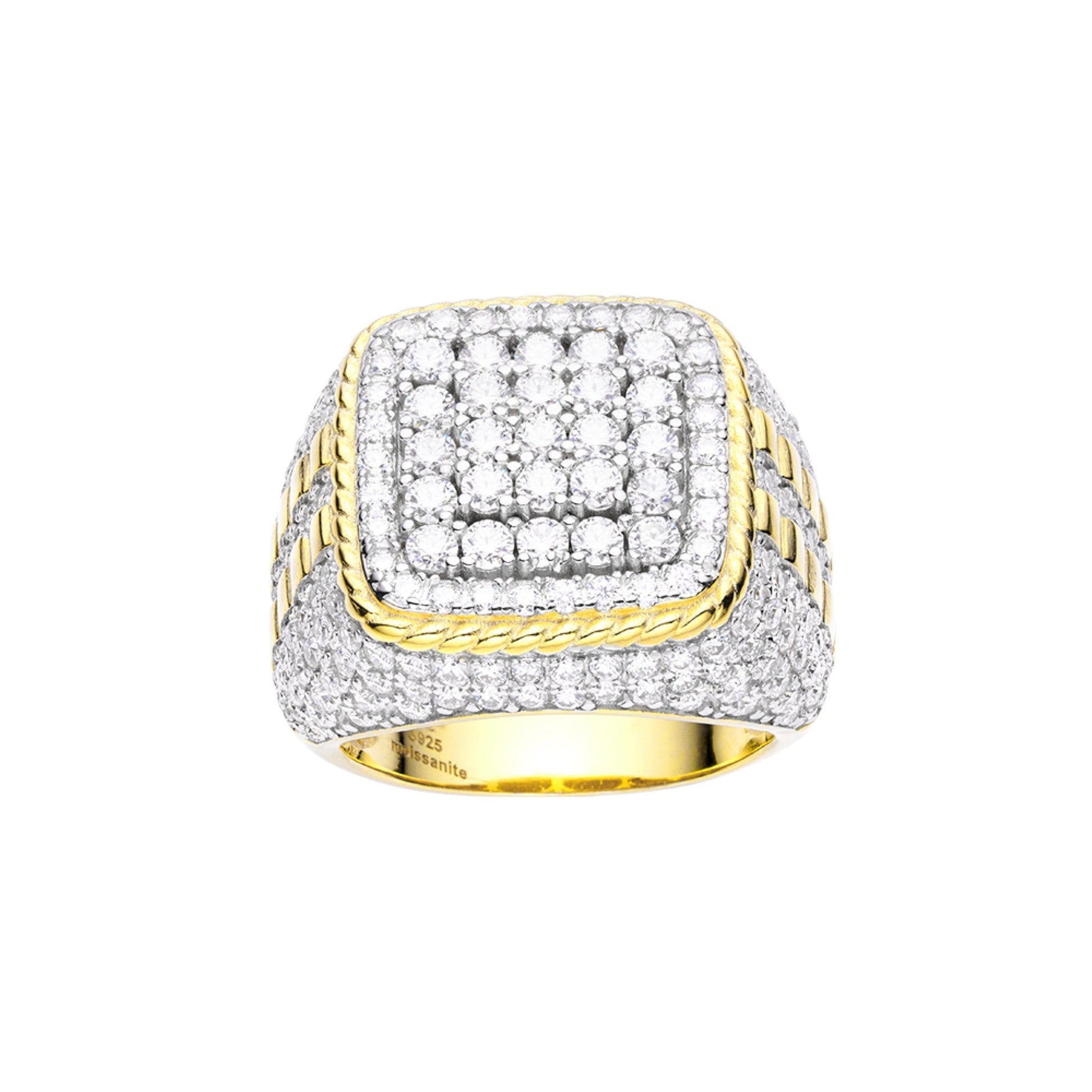 Showcase sophistication and luxury with this Sterling Silver Moissanite Carat Men’s Ring. Featuring 4-1/4 carats of radiant Moissanite stones, this ring offers exceptional brilliance and timeless appeal. Expertly crafted from high-quality sterling silver, it is designed to make a bold statement with its sleek design and remarkable sparkle.