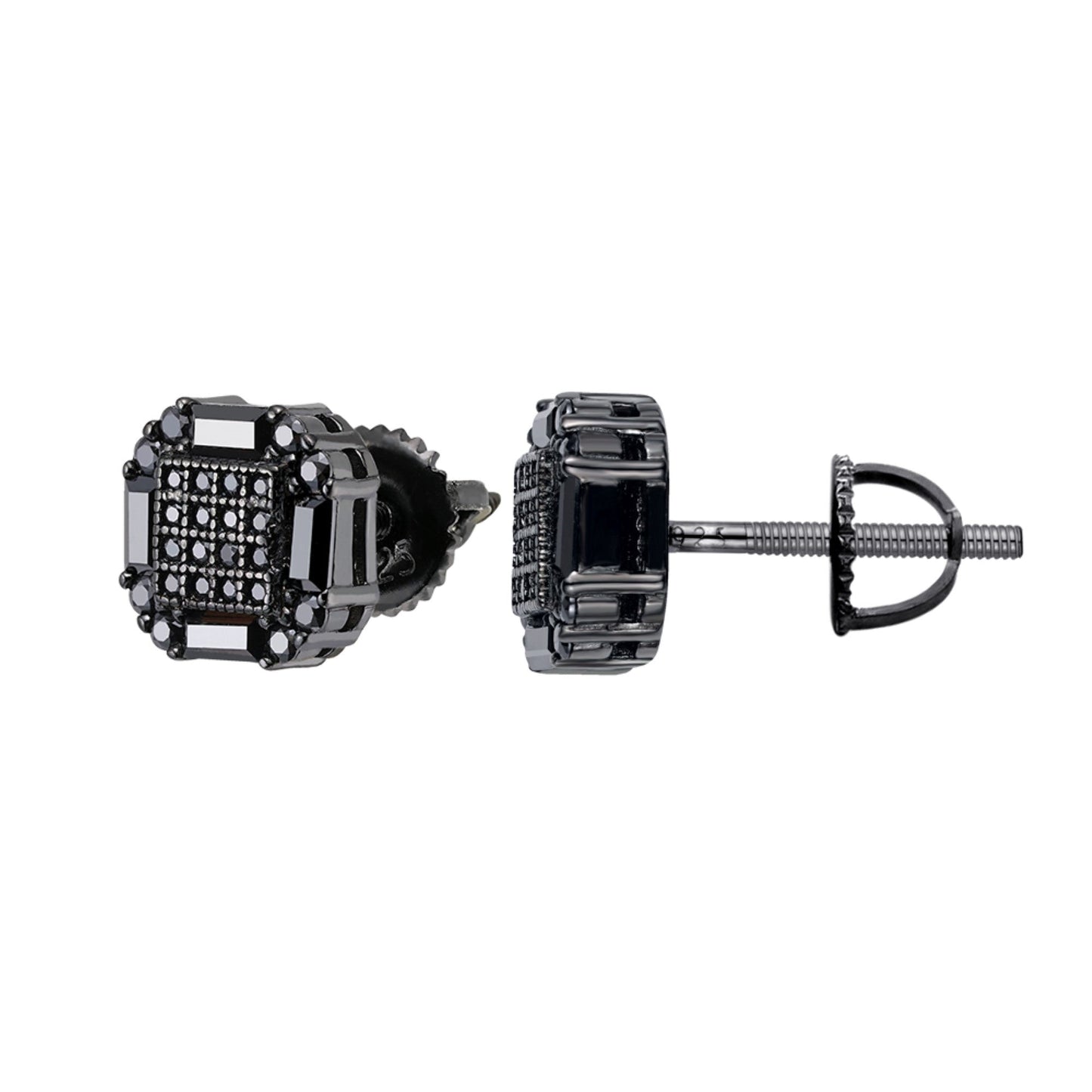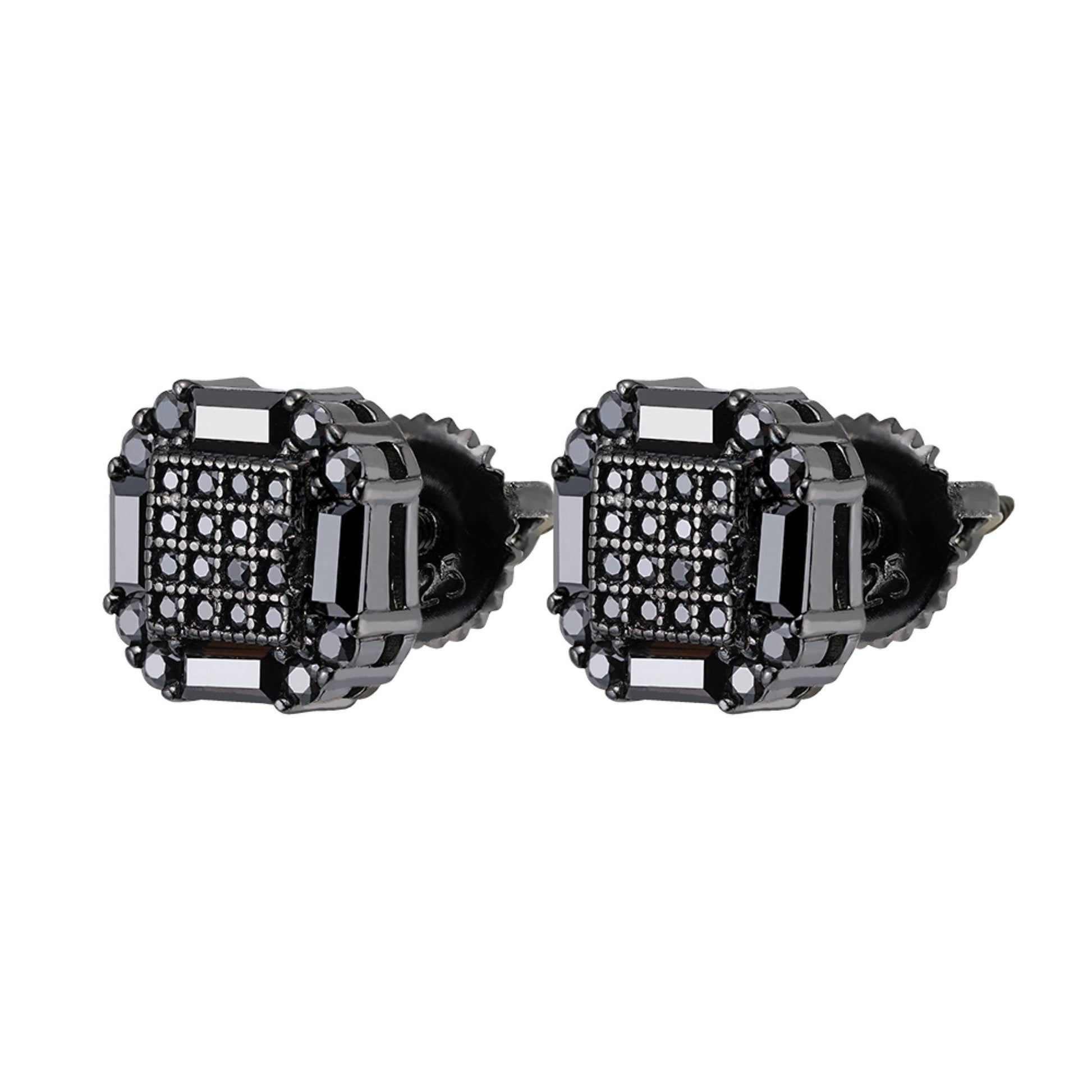 Sterling Silver Round Baguette Black Moissanite Square Shape Stud Earrings 7/8 Ctw