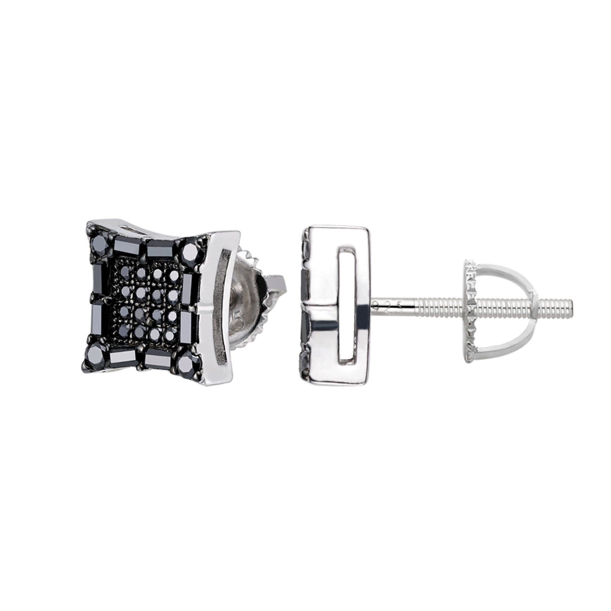 Sterling Silver Round Baguette Black Moissanite Square Shape Stud Earrings 5/8 Ctw