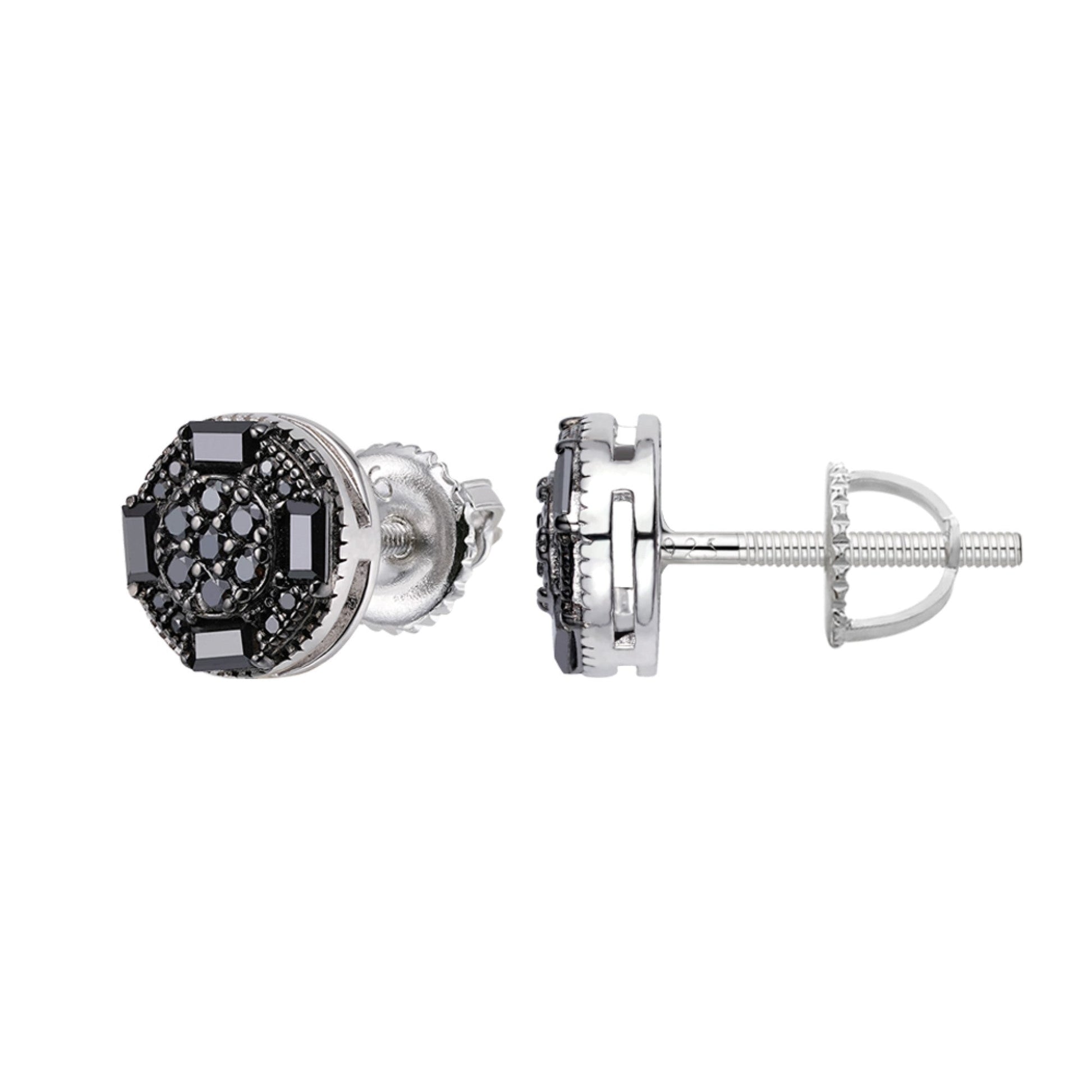 Sterling Silver Round Baguette Black Moissanite Stud Earrings 5/8 Ctw