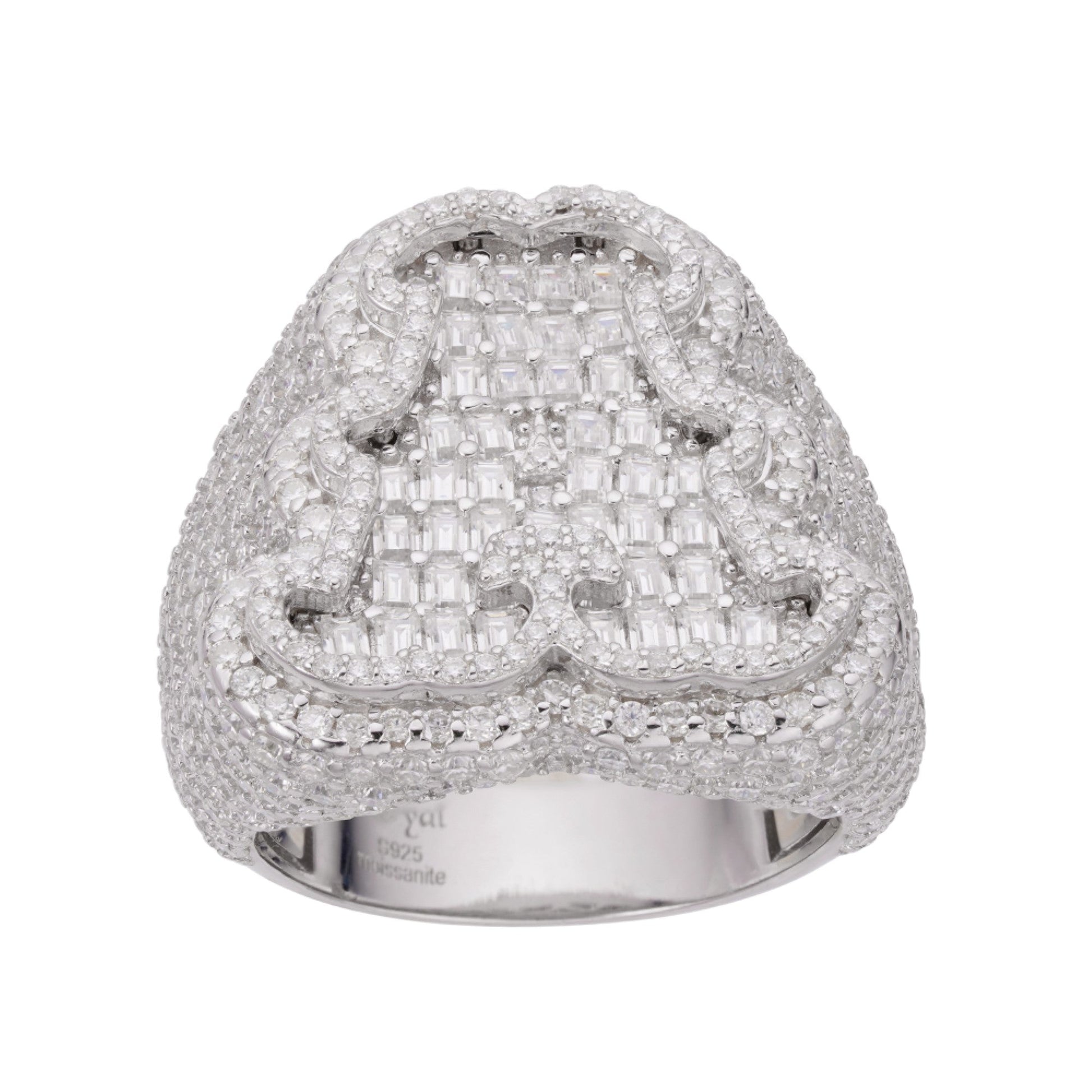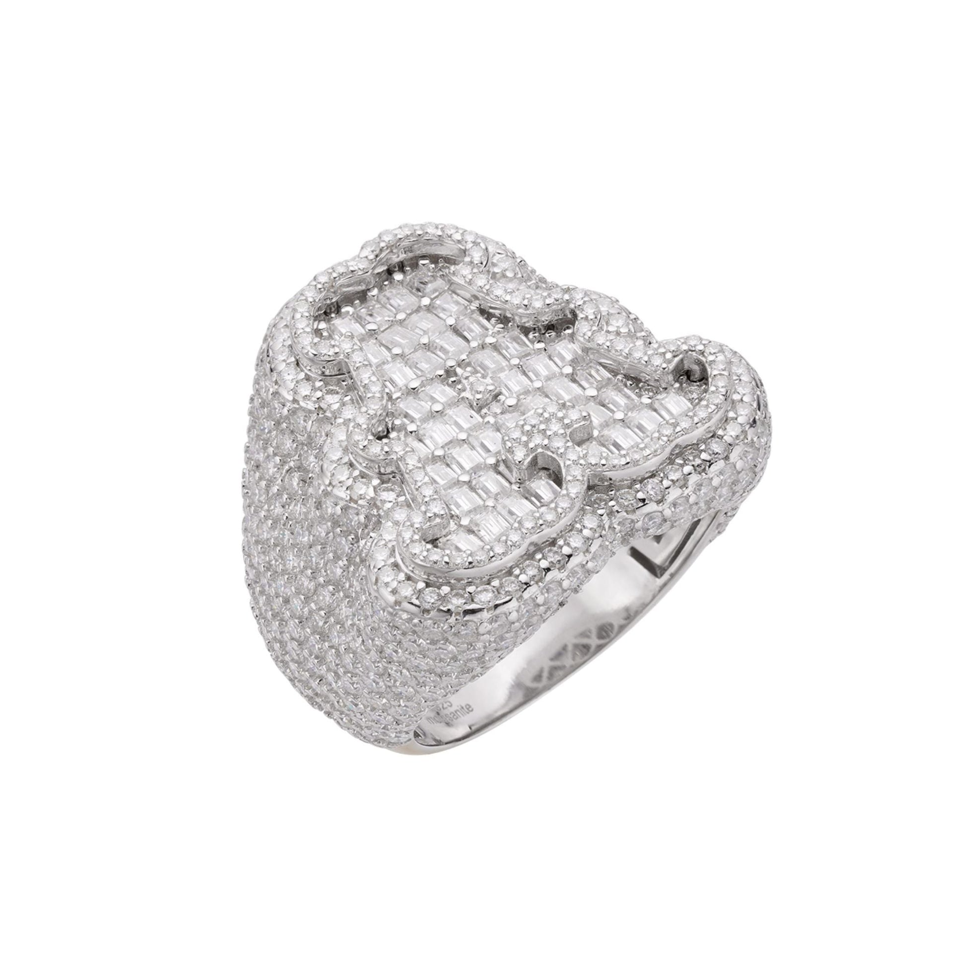 Sterling Silver Round Baguette Moissanite Albhabet A letter Initial Size 10 Men Ring 7-5/8 Ctw