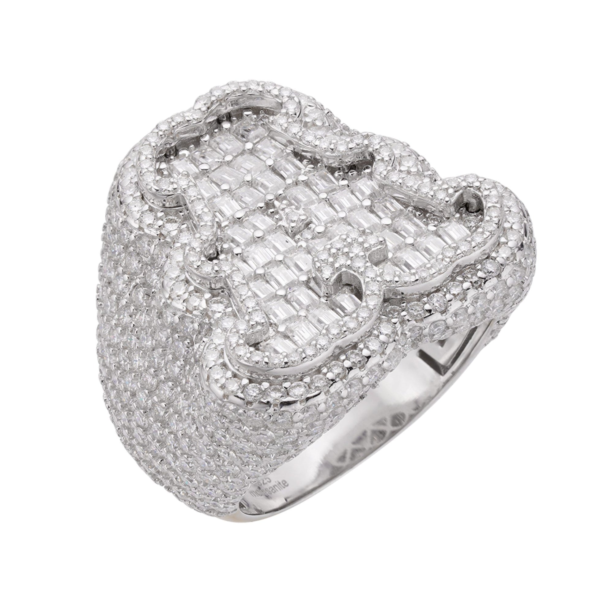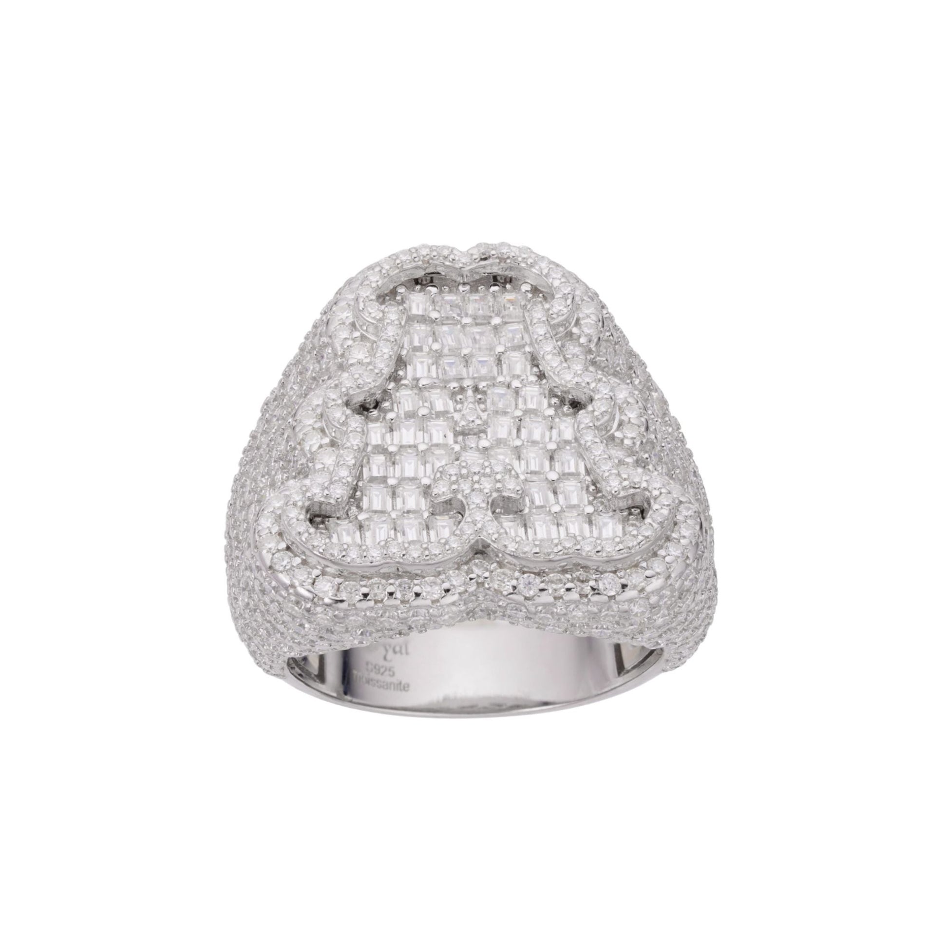 The Sterling Silver Round Baguette Moissanite Alphabet "A" Letter Initial Men’s Ring is a striking and personalized accessory that makes a bold statement. Featuring 7-5/8 Ctw of brilliantly cut round and baguette Moissanite stones, this ring showcases a sophisticated "A" initial design. Crafted with high-quality sterling silver, it exudes a refined yet powerful charm. Perfect for adding a unique touch to your personal style or for gifting someone special, this ring is a timeless treasure.