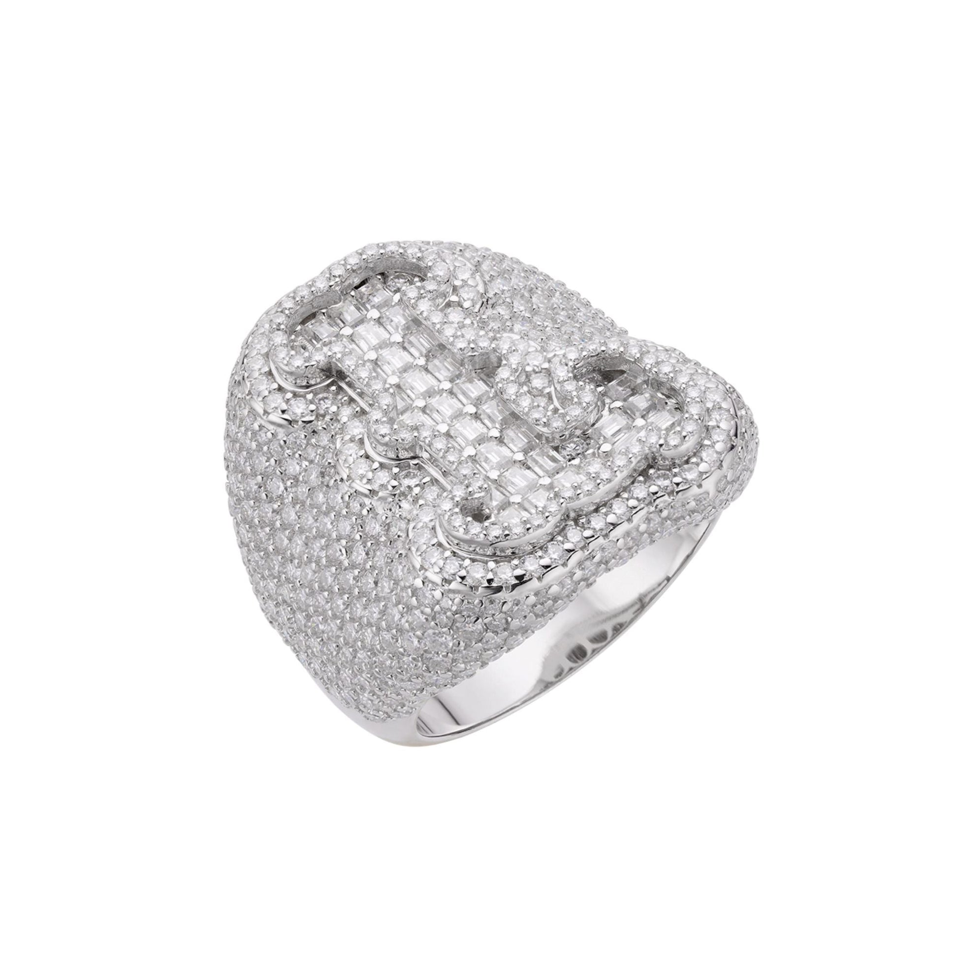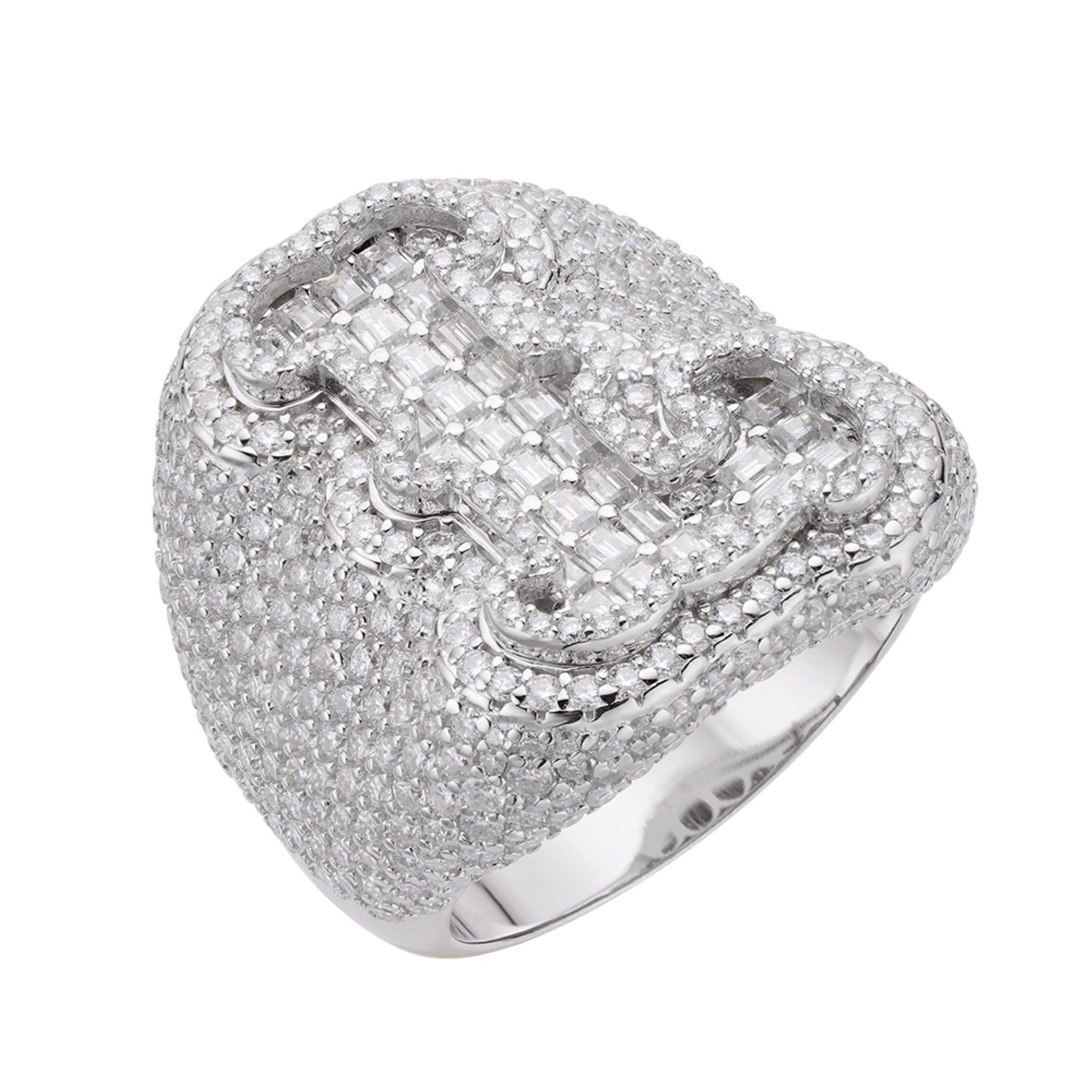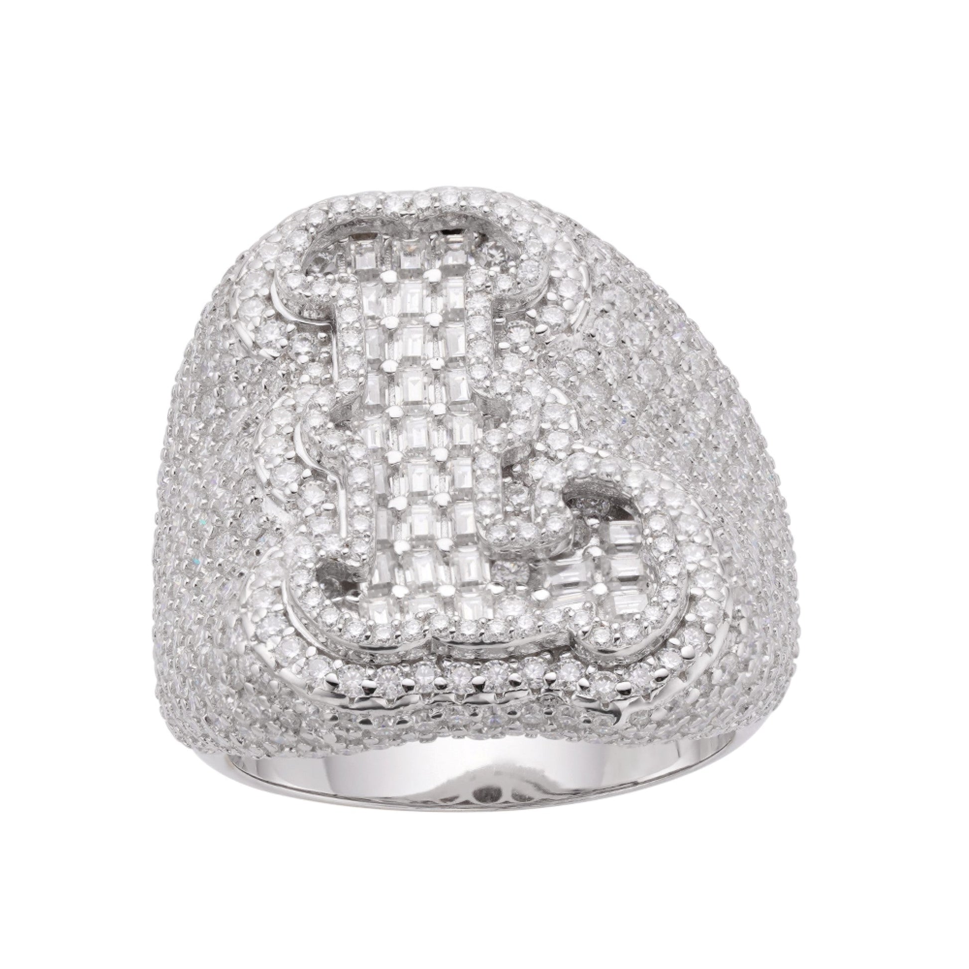 Sterling Silver Round Baugette Moissanite Albhabet L letter Initial Size 10 Men Ring 6-5/8 Ctw