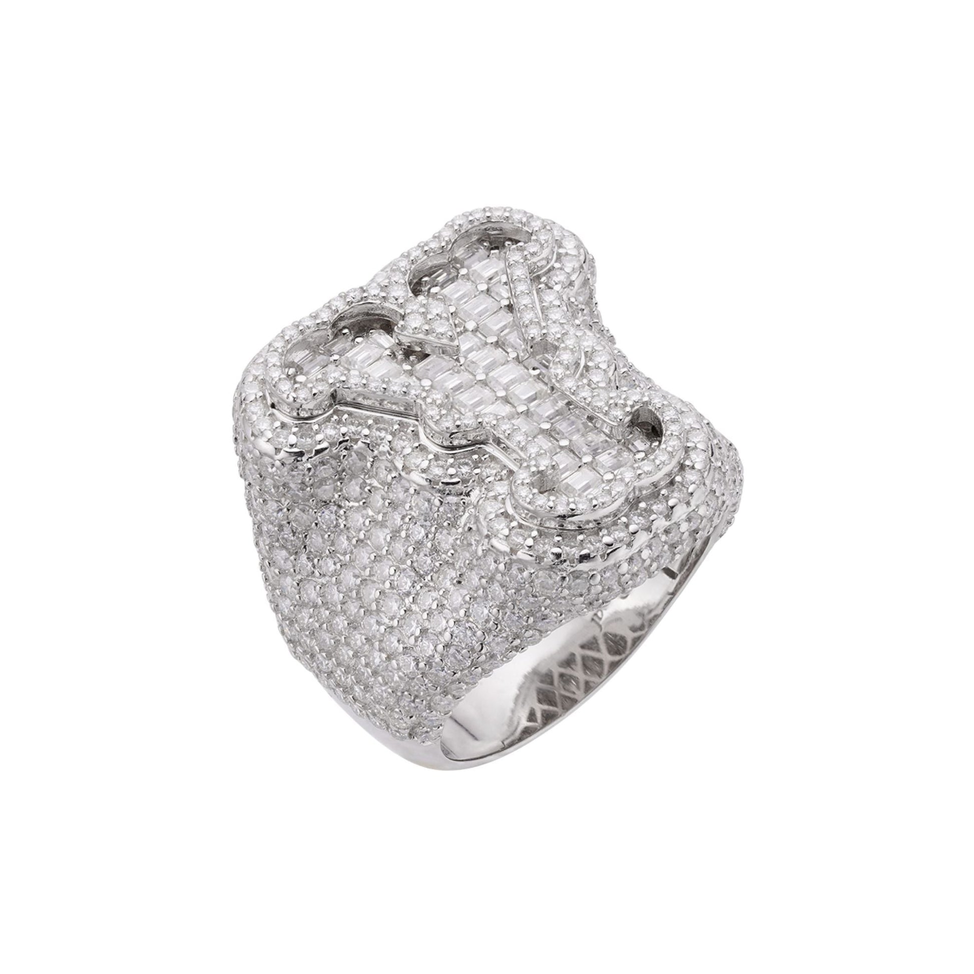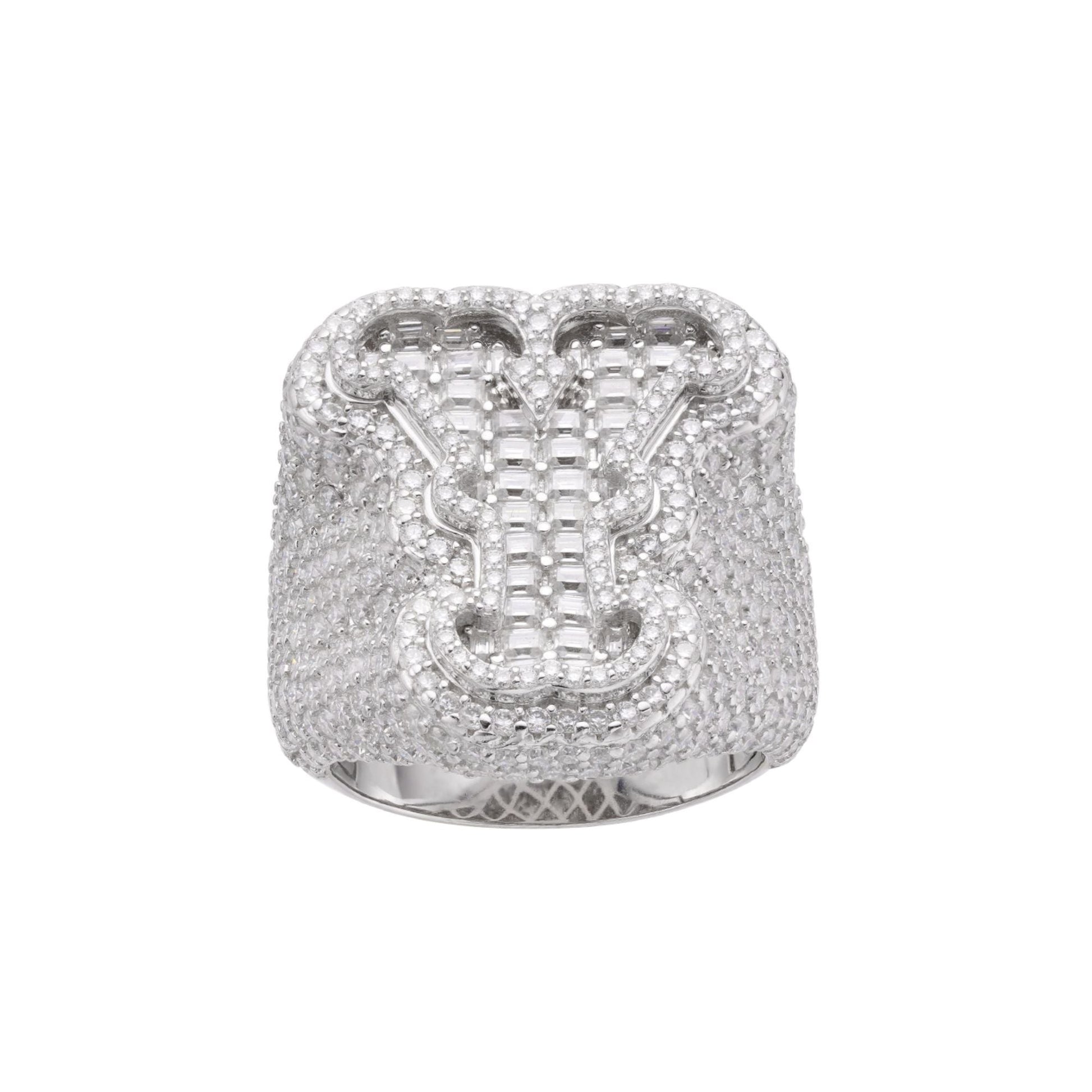 Sterling Silver Round Baugette Moissanite Albhabet Y letter Initial Size 10 Men Ring 6-7/8 Ctw