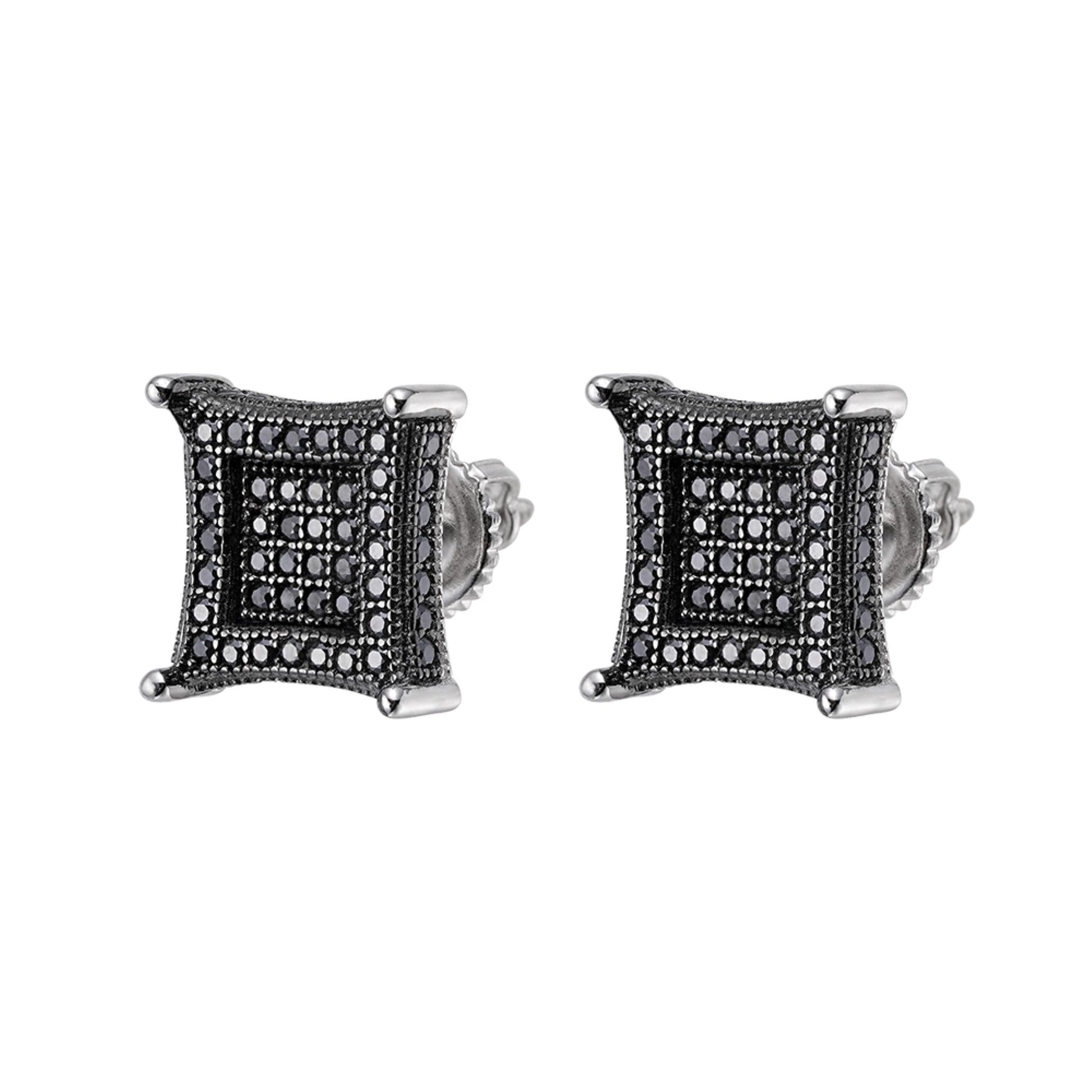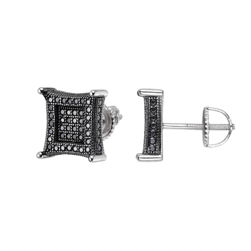 Sterling Silver Round Black Moissanite Square Shape Stud Earrings 7/8 Ctw