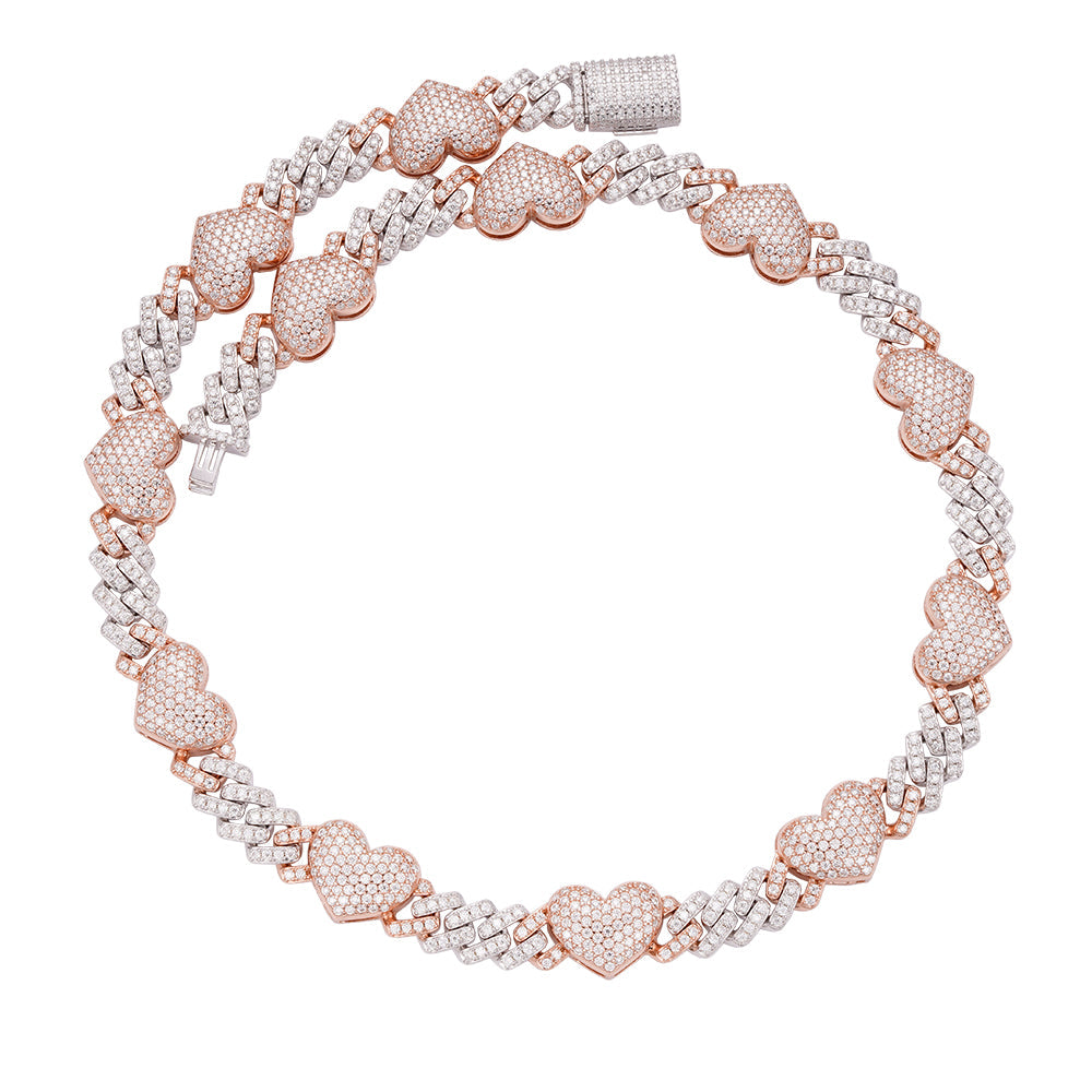 Unique Cuban link design blended with heart-shaped elements for a standout look